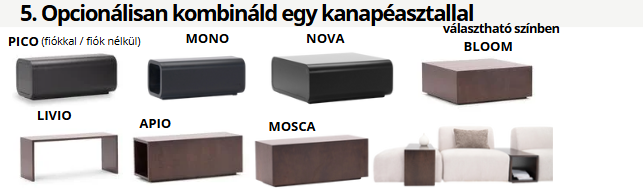 - többféle kanapéasztal – választható furnérral