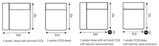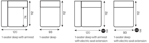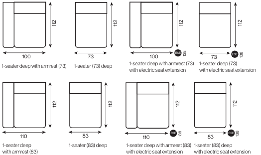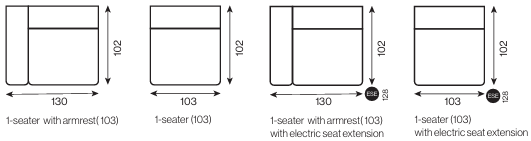 MÉLYSÉG (elektromosan kihúzható ülés) 102 (128) vagy 112 (138) cm MAGASSÁG 75 cm ÜLÉSMÉLYSÉG (elektromosan kihúzható ülés) 64 -(90) cm /74 -(100) cm ÜLÉSMAGASSÁG 42 cm - opcionálisan elektromos ülésnagyobbítással