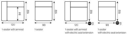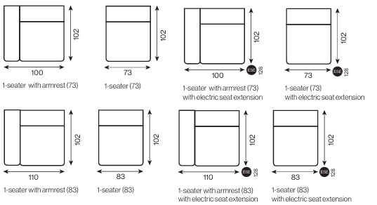 - üléses modulok – standard mélységű verzióhoz 64(102)különböző szélességgel – opcionálisan elektromos ülésnagyobbítással (ESE)