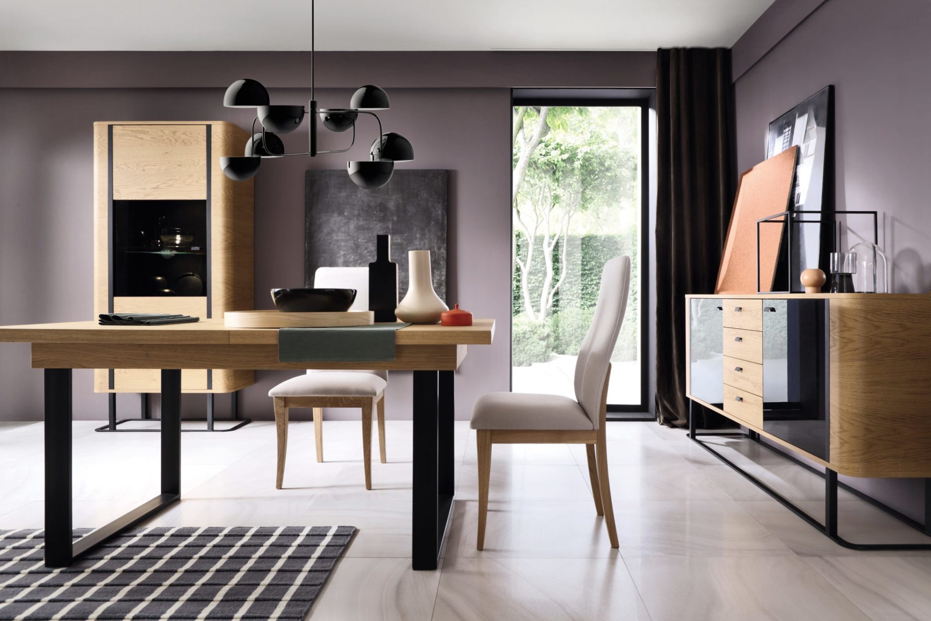 Minőségi fafurnéros étkezőasztal, az GRANDE termékcsalád egyik eleme. A kollekció a modern formákat kedvelők számára készült, a finom díszítések karaktert adnak a helyiségnek.