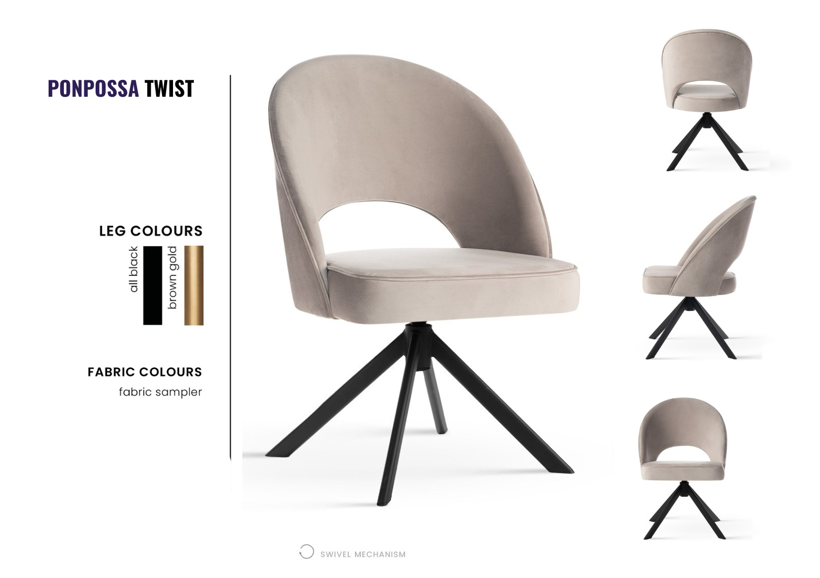 TRV – Ponpossa TWIST | {fémlábas} forgó étkezőszék – választható szövet