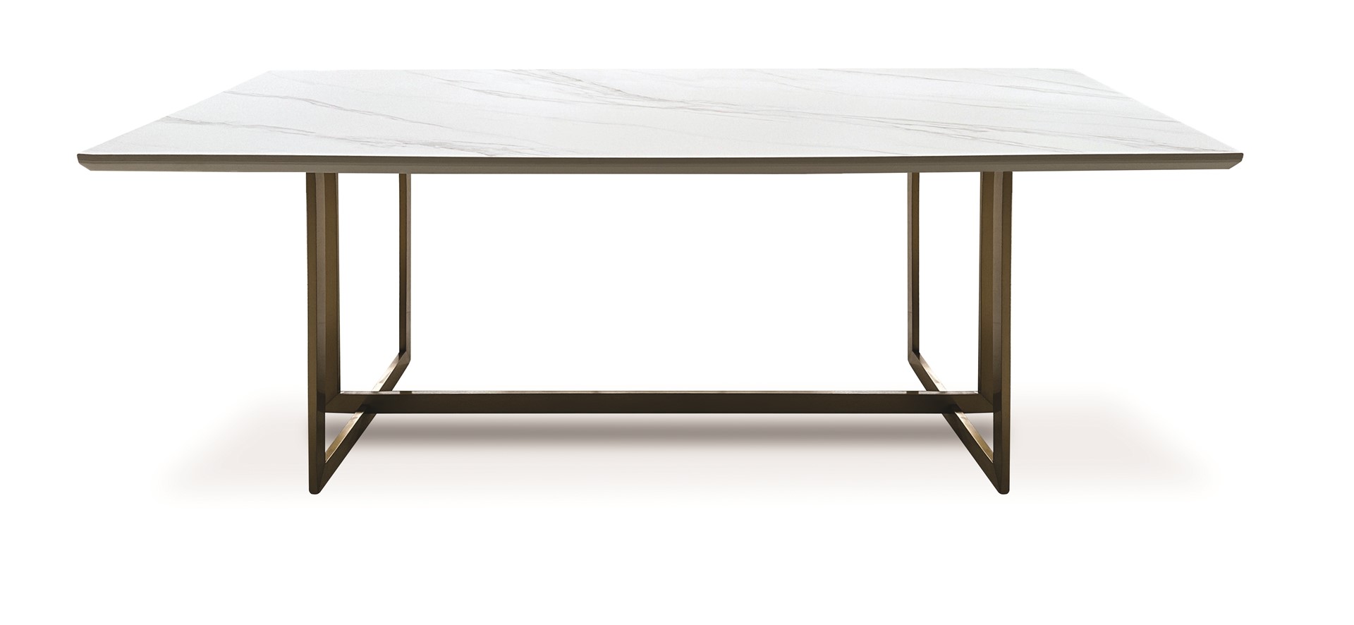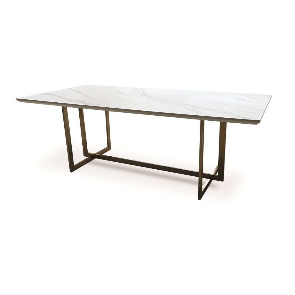 Az ALBASSA 220 fehér márványhatású (mdf) asztal pezsgőarany lábakkal egy elegáns bútor, amely tökéletesen illeszkedik a modern enteriőrbe.
