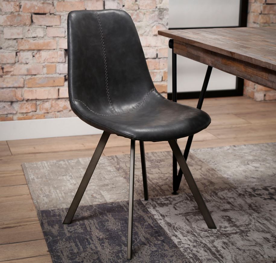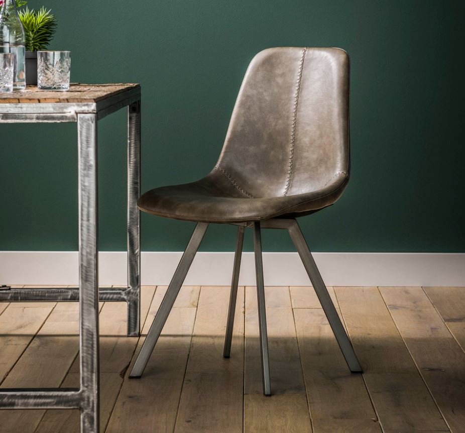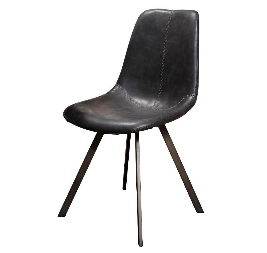 Modern étkezőszék acél vázzal, nagy kopásállóságú bőrhatású kárpitozással.